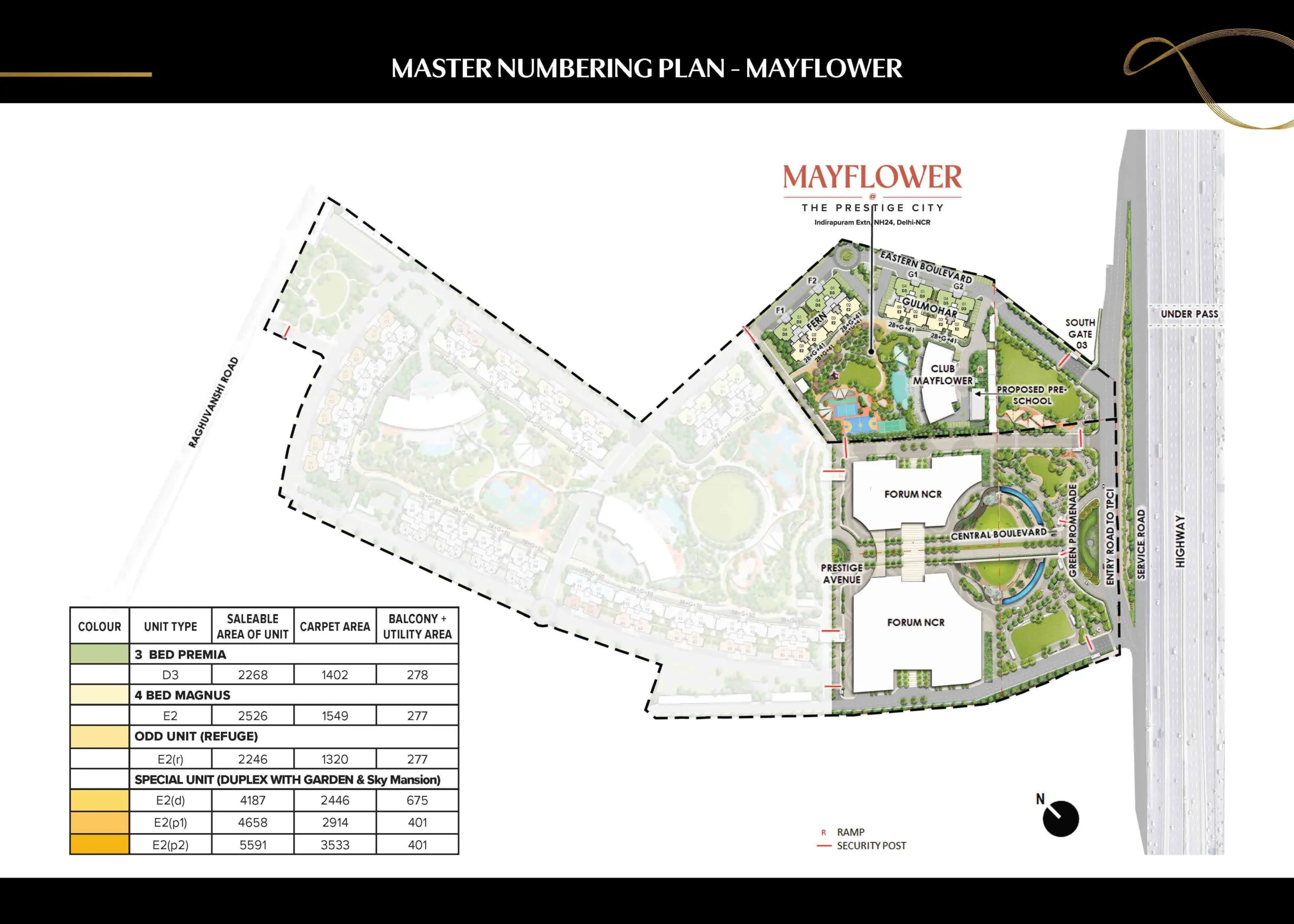 When you step into The Prestige City Indirapuram, Mayflower is what you notice first. It sits right at the entrance, not hidden away. In front of it, there’s open land. Real open space. On one side, a two-acre garden that actually feels usable, not ornamental.